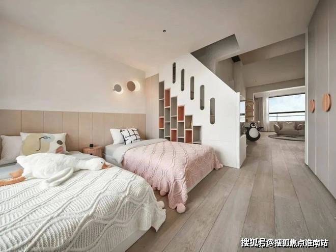儿童房,设计师没有采用传统的 “一个房间” 概念。他们认为家应该包容所有人,不管是大人还是小孩。父母也不该什么都替孩子决定。所以,家里专门给孩子打造了一个专属空间。