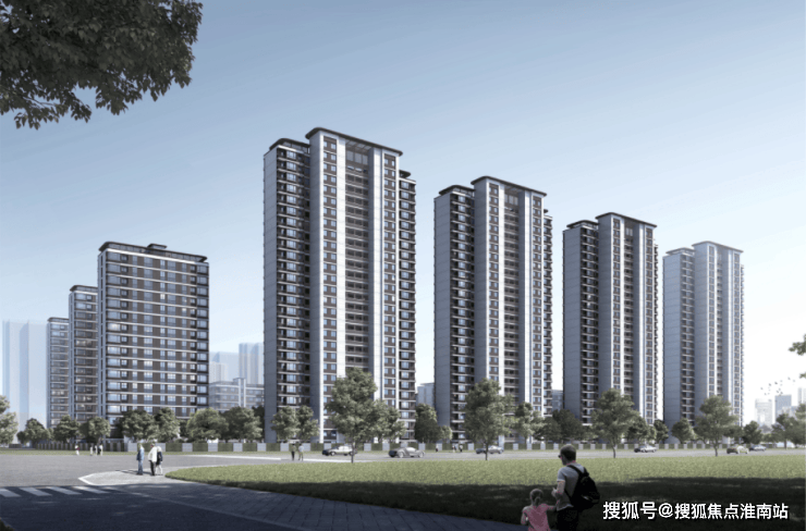 。项目采用铝板+真石漆+玻璃幕墙的外立面,并规划了中央荷韵景观轴、全龄活动空间等设施