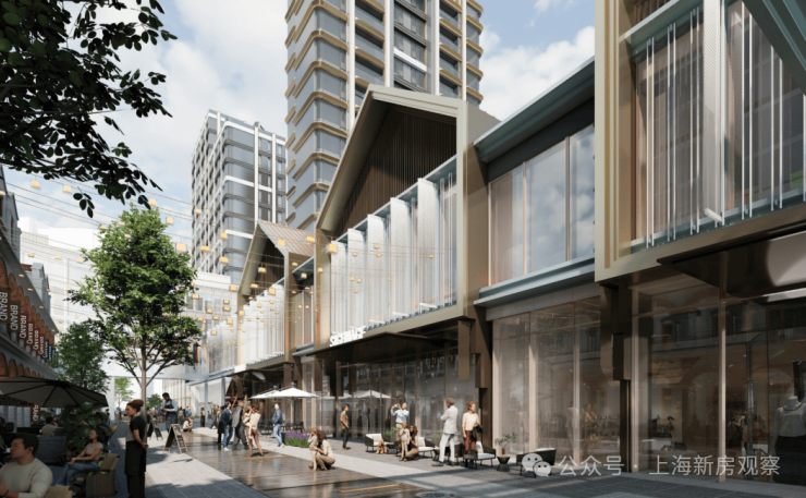 其二,设计对标香港元创方,将在开阔的中庭中,打造全天候集市空间,以餐饮、零售为主要业态。在上海,也有一个类似体量的商业体可供想象,就是从去年开始就颇受好评的鸿寿坊,在一个市集中,有茶馆也有咖啡,能吃一碗面也能啃两个汉堡。匹配生活需求的,才叫“好配套”。