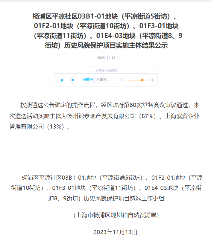 2023年底,中信泰富(87%)联合杨浦国资(13%)通过协议出让,以超114亿总价,63127元/㎡楼面价,竞得杨浦滨江4宗打包地块。4宗土地包含3宗低密度住宅用地以及1宗商业、办公、住宅混合用地。
