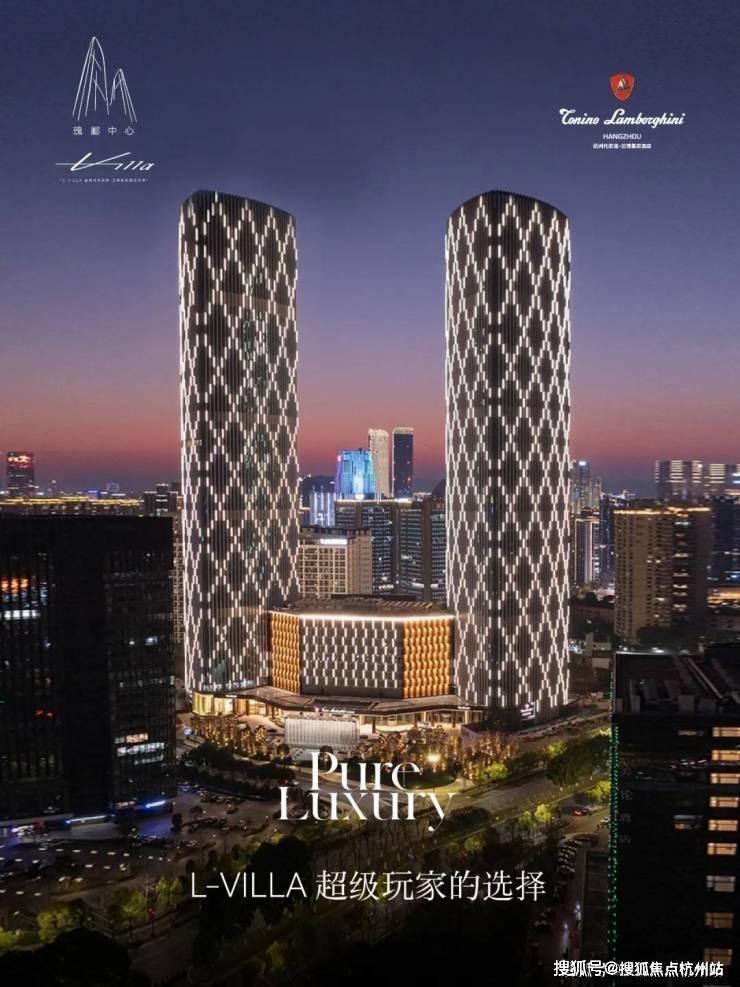 是杭州之门后,奥体落成的海拔第二高双塔(约250米),外号“小杭州之门”。瑰郦中心L-VILLA位于T2塔楼,12层的裙楼就是托尼洛·兰博基尼酒店。