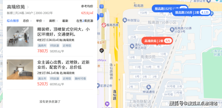项目就一栋楼,与2000年左右建设的高境欣苑在一个大社区,目前链家上高境欣苑挂牌价为5.8-6万/㎡。