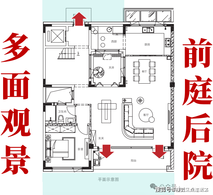 我们常说,墅居所代表的,是隐逸自在的生活哲学。而这种“自由”便由院子而来,我们以 约310平合院户型来鉴赏——