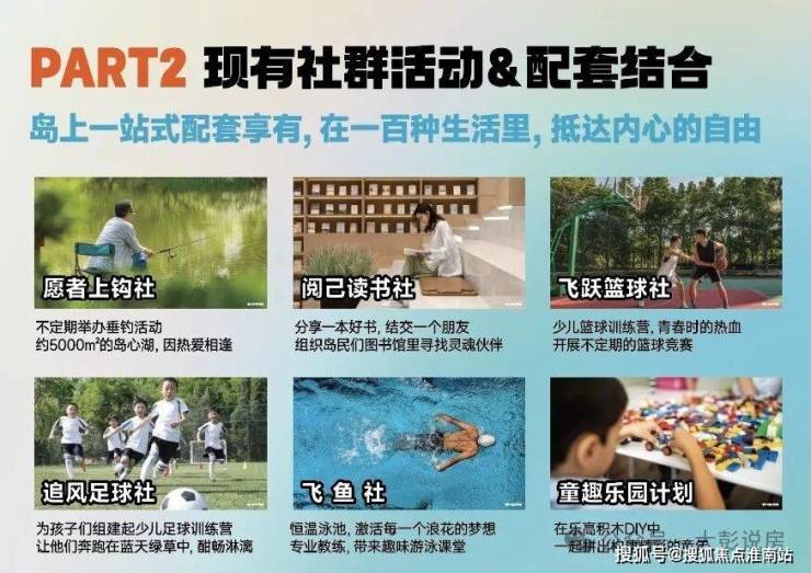 趣岛上,乐享生活。生活最好的样子不是一个人精致,而是一家人的精彩,岛上享有一站式配套社群活动,让业主轻松乐享100种生活。