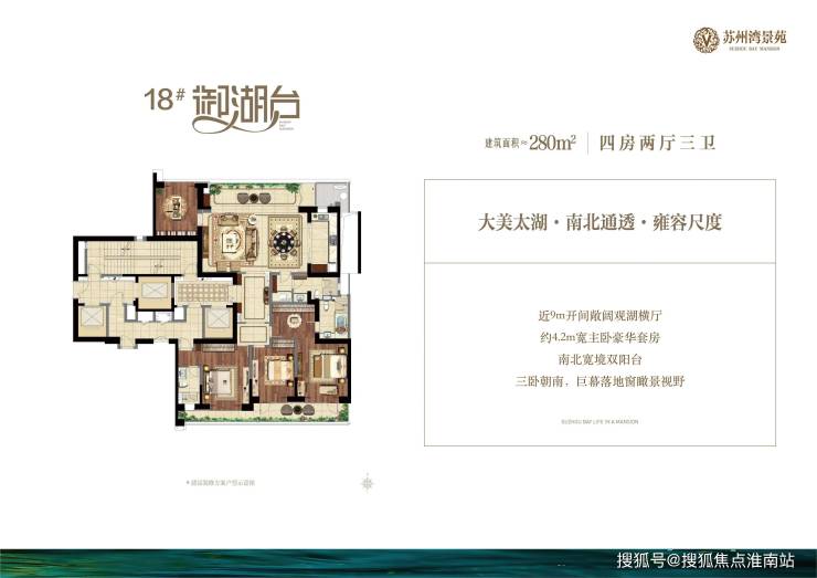 苏州湾景苑售楼处电话:400-9966-224【预约看房热线】✢VI 国际大师执笔 匠筑阔景宽幕湖居平墅-主力户型为约280-390㎡苏州湾绝版湖景平墅,入住人群均为高净值人群,户型由从业40年经验,15次国际大奖国际大师梁志天设计,户内层高3.45米,超大开阔客厅/套房,南北动静分离,洄游客厅+餐厨互动,双阳台最大化观湖大横厅,270度全景落地窗让湖景和城市景观如画卷。