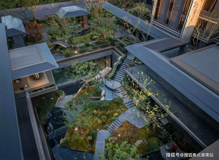 庭院的选材也极具讲究:太行山金景石堆叠成小山丘,岭南古桩铁冬青与中华原生乌桕树移栽而来,蕴含“聚财守业”的美好寓意。细节之处,经得起推敲,让人越看越有味道。