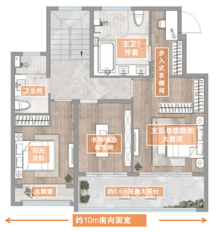 约50㎡左右主卧大套房,独立卫浴5件套+步入式衣帽间,给予终极改善应有的排面!幸福指数蹭蹭往上涨!