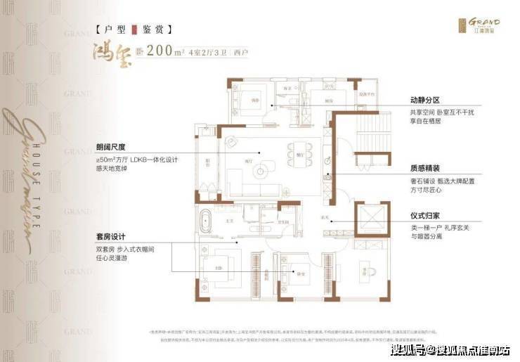 户型为建面约200㎡4房3卫大平层。