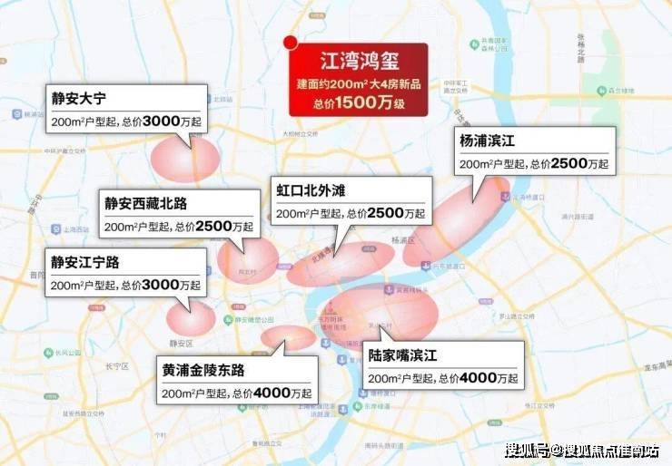 在如今普遍约10万+的上海中环沿线,以1500万级的价格就能买建面约200㎡起大4房,目前只有江湾鸿玺一盘。