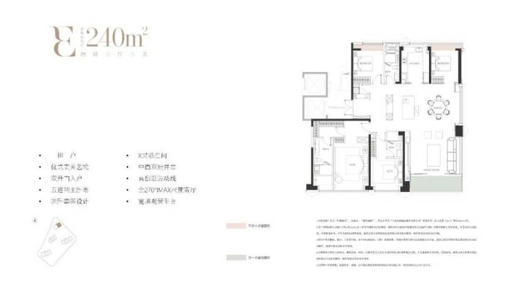 主力户型:建面约124–330㎡的3-5房大平层,精装交付标准超6000元/㎡,配备嘉格纳、杜拉维特、高仪等国际一线品牌,搭载五恒科技系统(恒温/恒湿/恒氧/恒洁/恒静)及华为鸿蒙智能家居。