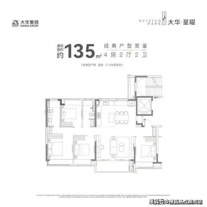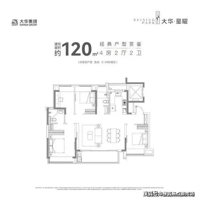 建面约120㎡的产品,市面上大多都是3房,但大华星曜做了4房的设计,实用性非常出色。