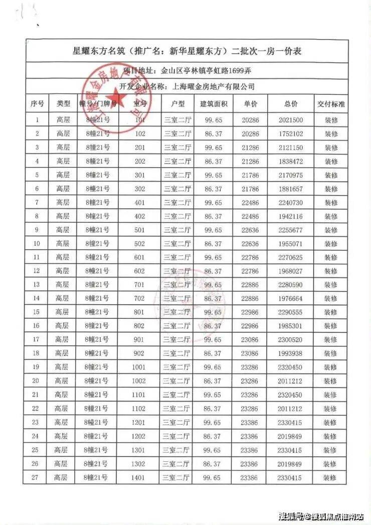 一房一价表: