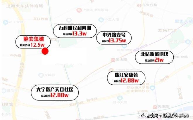 目前周边的新房价格来看,安康苑在2021年时均价已经来到了12.88万/㎡,万科雅宾利四期联动价约13.3万/㎡,此外中兴路一号攀升至13.75万/㎡,以及静安04-05、05-01北站新城地块21万/㎡惊人的房地联动价。