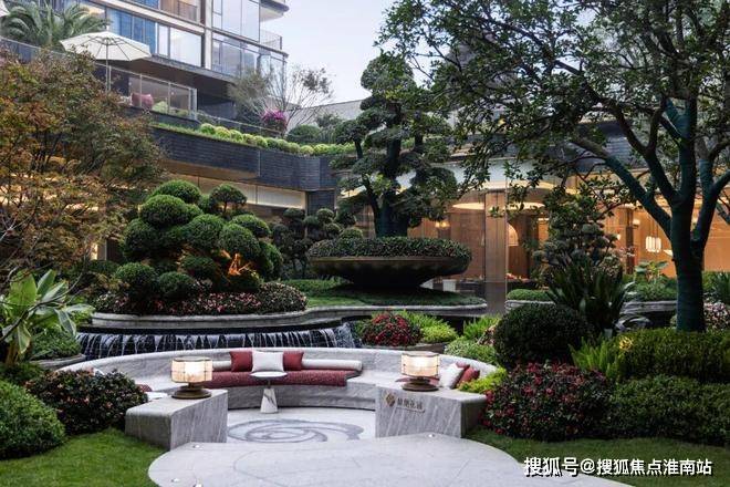 让小胖印象最为深刻的是那个下沉式庭院:树木都是非常浓密的那种,一看就“很贵”,而且几乎每一棵都有“专属花盆”,修剪的层层叠叠。