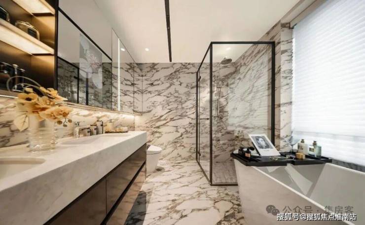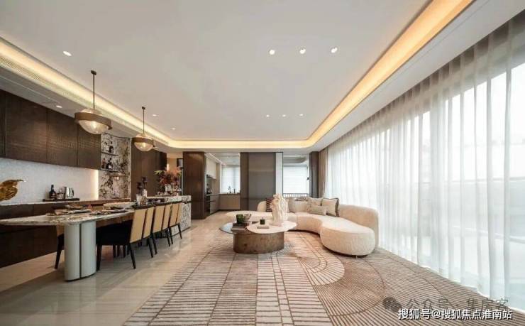 同时, 不仅餐客厅有着约7米的落地门窗,书房与主卧还都坐拥270°采光面,任由晨光与暮色在家中流转,也撑起了豪门大宅的自信气场。