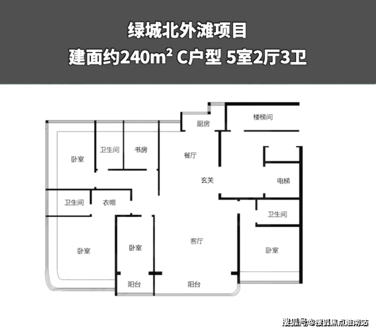 户型方面,整个小区计容面积 5.1 万方,没有住宅套数下限,也没有中小套型占比限制。预计均为大面积+大面宽户型。从规划图可以看出,两梯两户,有三阳台和全飘窗。
