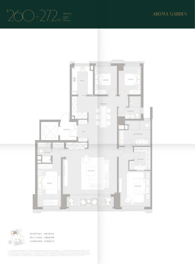 纯粹大宅规制,豪华主卧套房设计(部分户型为全套房设计),约120㎡LDK+X空间、270度转角落地窗、约16米超宽尺度花园阳台,精心甄选GAGGENAU、Honeywell、Miele、怡口、德国柏丽、劳芬、大金等国际一线品牌,满足超越日常生活的需求。