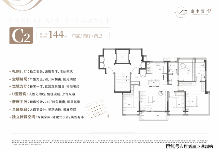 3、约100-144㎡3-4房王炸户型设计近乎完美!3m层高尺度奢阔!细节设计可圈可点:“S”墙冰箱收纳、270°主卧飘窗、超大面宽阳台、以及超高标准的精装配置,更匹配改善人群的高要求!