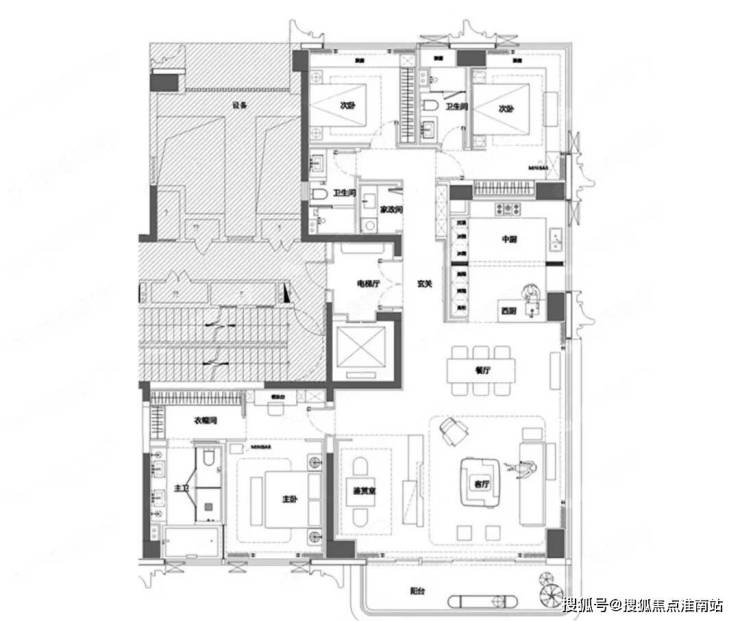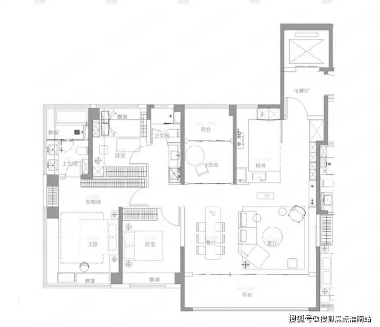 大户型2梯2户,小户型3梯4户设计,其中值得注意的是123㎡小户型在此玩了一个高明的“空间魔法”:用3梯4户的配置,给123㎡的边套也变出了“一梯一户”的尊贵感。这让南向两面宽的短板,瞬间被极强的入户私密性和仪式感所弥补。3.社区全架空层设计