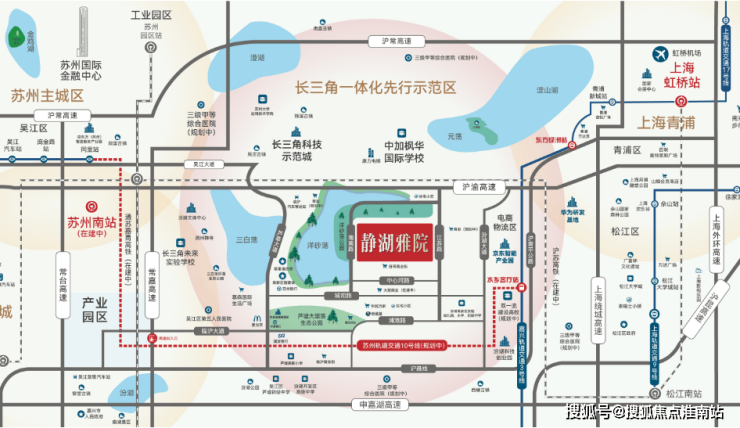 距苏州南站仅7公里,通车后15分钟到虹桥。驾车10分钟到青浦,30分钟到虹桥。驾车10分钟达