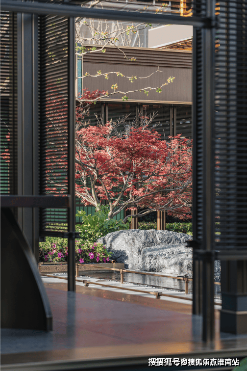 从门堂进入之后,一整面玻璃幕墙将山水隐园的景色框定在眼前,开阔的视野立刻带来了强烈的视觉冲击。,慢慢深入之后便会发现,眼前景色随着脚步一点点发生变化,心情也不知不觉跟着产生微妙的起伏,真正做到了“移步异景”的效果。