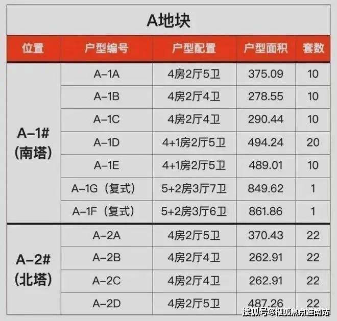 在A地块中,共规划了150套天际大平层,这些住宅单位的建筑面积均在约262㎡以上,且主要户型设计为4房至5房,旨在满足不同家庭的居住需求。