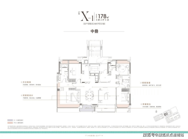 中平:四开间朝南IMAX级面宽,4房4飘窗2阳台双套房,一层之内尽享“大平层豪宅”尺度。