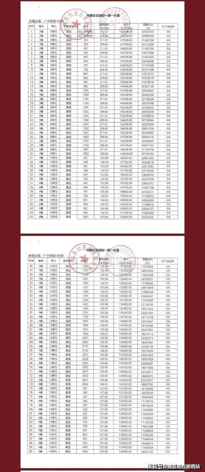 一房一价表如下: