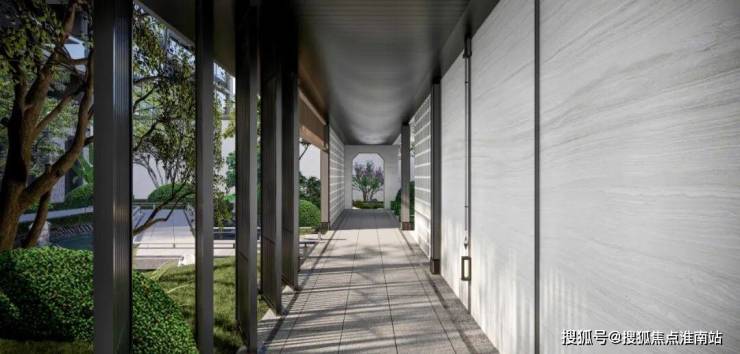 下叠庭院内,通透的大面积玻璃立面,结合檐下灰空间,形成开阔的空间感受;上叠超大面积露台打造“空中庭院”,使居住者于日常之中,体验到宋代取景自然、疏朗秀丽的园林之美。