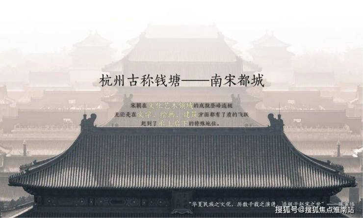 杭州古称钱塘,为南宋都城,宋朝在文化艺术领域的成就登峰造极,无论是在文学、绘画、建筑方面都有了质的飞跃,起到了承上启下的特殊地位。项目整体遵循宋代江南水乡的古城肌理,展现深宅贵府的隐奢调性,营造出“居山水、观天地”的空间意境。
