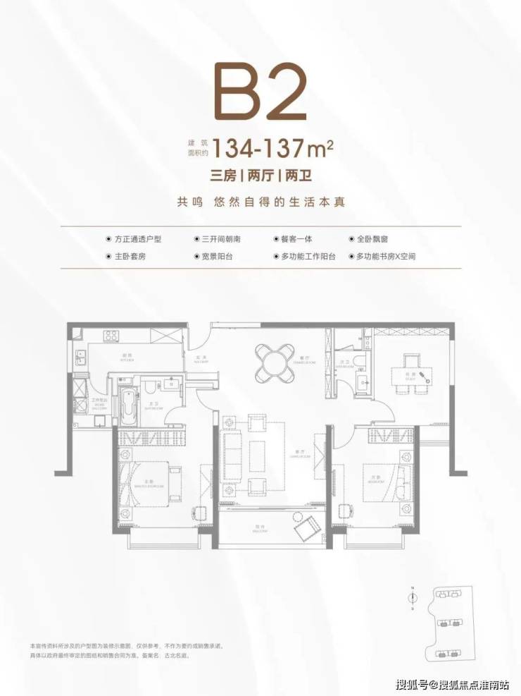 另一个则是134㎡的3房两卫的中间套,在户型图上可能看不出,这个3房的尺度感非常惊人。