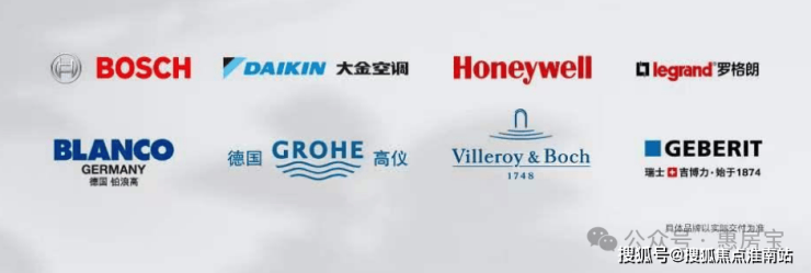 入户有松下三合一智能门锁、罗格朗可视对讲系统;全屋标配大金中央空调、菲斯曼地暖、霍尼韦尔新风系统;厨房配备博世BOSCH油烟机、燃气灶、洗碗机、蒸烤一体机,铂浪高水槽和龙头;卫浴配有高仪龙头花酒、唯宝挂壁式马桶、吉博力同层排水系统等。*精装品牌以实际交付或同档次品牌