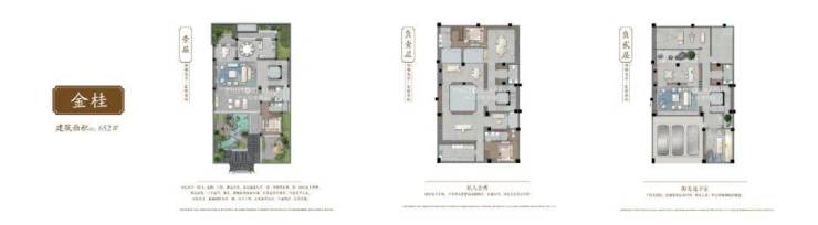 主力为建面约176–667㎡的纯中式合院别墅,实得面积可达500–1000㎡,得房率超300%: