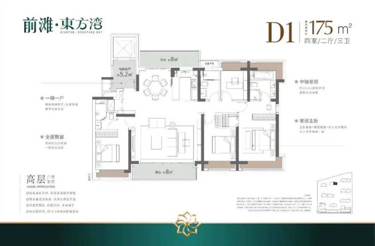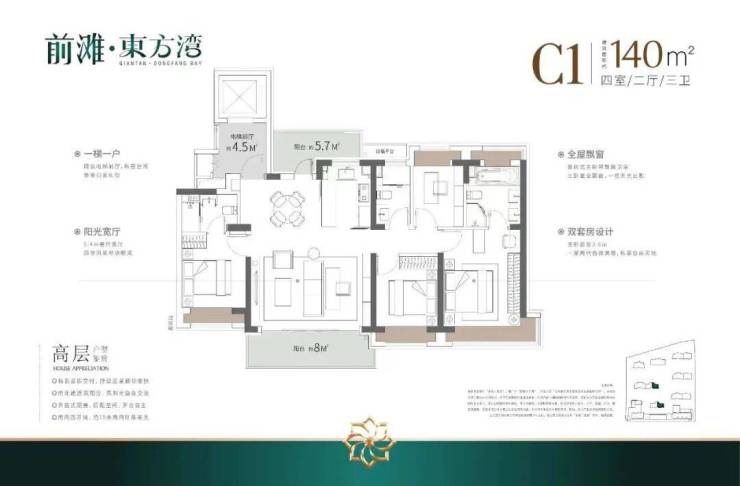 如果有进阶改善置业需求的客户,可以选择建面约140/175㎡4房2厅3卫!