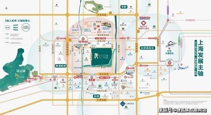 项目北侧直线约1公里就是示范区线赵重公路站(在建),向西可以直达青浦华为研发中心,向东2站即可到达前湾,3站直通虹桥枢纽!