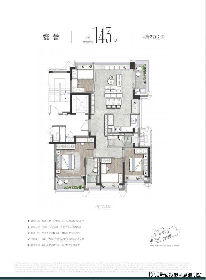 作为上海首批“好房子”新规落地范本「誉静安」未止步于单一标准的复刻,而是深度贴合上海高端家庭需求,开创性打造3.5 代宅,其约143㎡宽奢四房堪称“空间教科书”——
