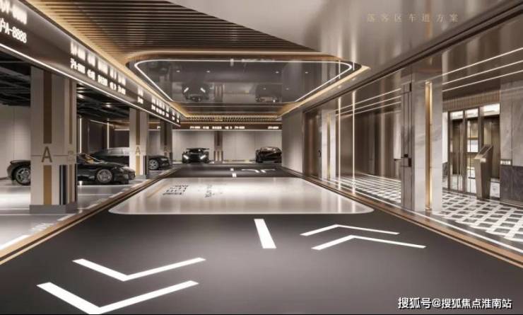 项目车库采用贯穿式鱼尾灯坡道和超耐磨地坪,过道全部采用精装吊顶,地下管道和局部区域进行二次包裹!尤其惊艳的是项目的豪华车马厅,采用水磨石、水晶漆、铝饰面、大板砖、立柱石材包边、门禁系统三合一!