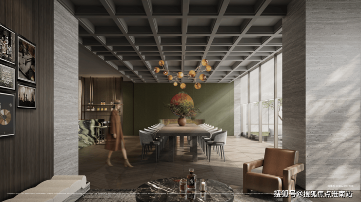 同时,部分采用天青色釉面陶板,超扁平形制,同样搭配大面幅落地Low-e三玻两腔玻璃,让建筑像是妙手剪裁的艺术品般行云流水,更大程度的为业主带来宽绰视野,体验摩登生活。