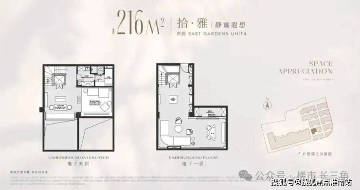 以建面216平户型为例,地面总高3层,地下一层5.5米带夹层,地下室面积就达到120m²,另外有露台、花园等,项目平均附赠也达到了约60%!