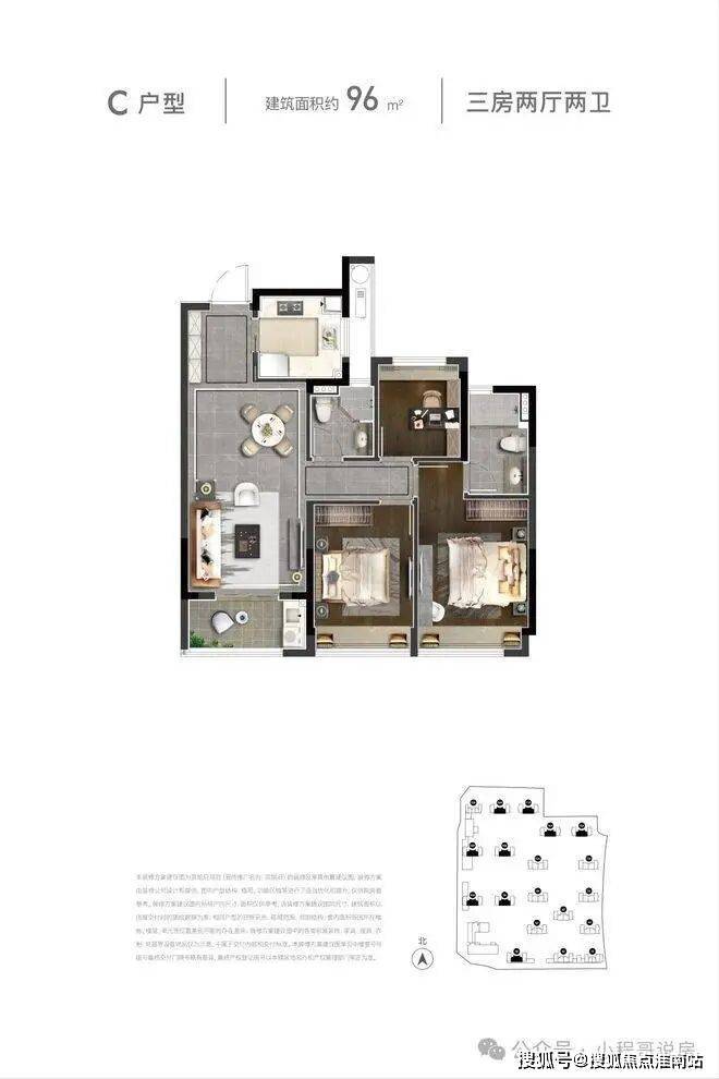 滨旭府总建面约23.5万㎡,由9幢高层(27层)+8幢小高层(18层)+1幢公租房(19号楼)+1幢自持(1号楼)及一所幼儿园组成。小高层主力户型为约89㎡中间套,约98㎡边套,有少量约110㎡边套;高层主力户型为约96㎡中间套,约99㎡边套