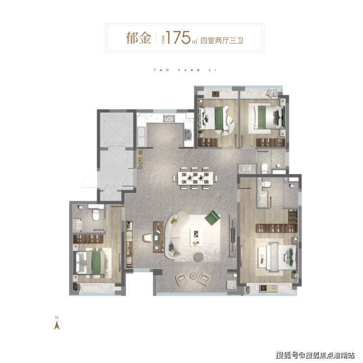 通过新桃源会客厅社区广场与独立社区会客大堂、林荫归家步道、中央景观聚场、品质入户单元昭示性景墙+专属入户铺装、首层精装大堂五大节点,赋予归家路途更多逸趣与美好。
