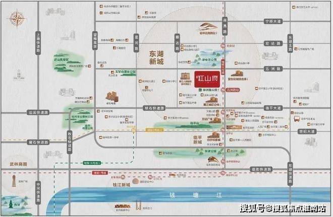 东湖新城,临平区双中心之一,国家级经济技术开发区内,集千亿产业集群、百万方商业、高铁枢纽于一体。规划建成杭州融沪桥头堡的北部门户、