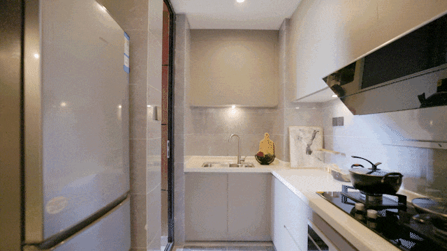 L型厨房让居家烹饪得心应手,卫生间的合理设计让起居动线更为合理有序。