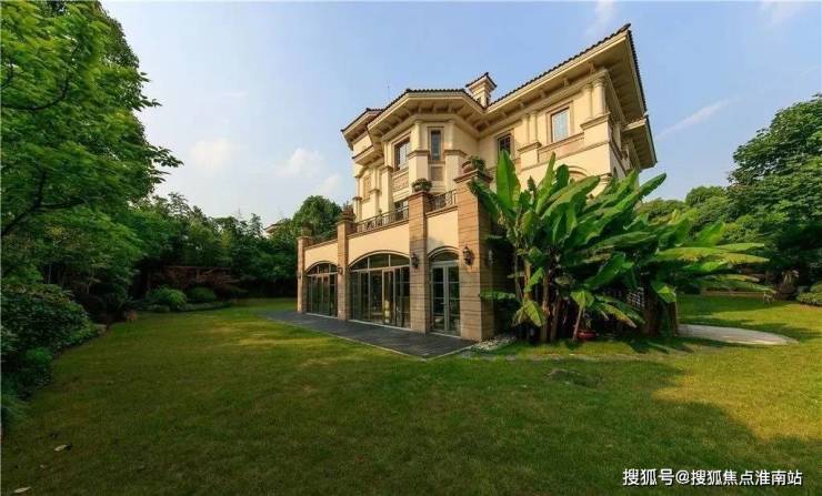 航拍俯瞰,浓荫绿树,这可不是普通别墅区可比拟的,每一棵树没个几十年可长不到这尺度啊。关键是,合生东郊别墅可是在上海,内环旁哦!外立面,澳洲砂岩配以砂岩浮雕。私家大花园,近三个篮球场大小,室内电梯、室内外泳池都是标配。