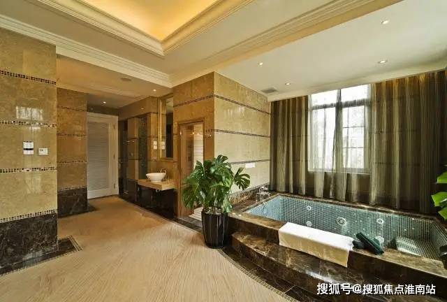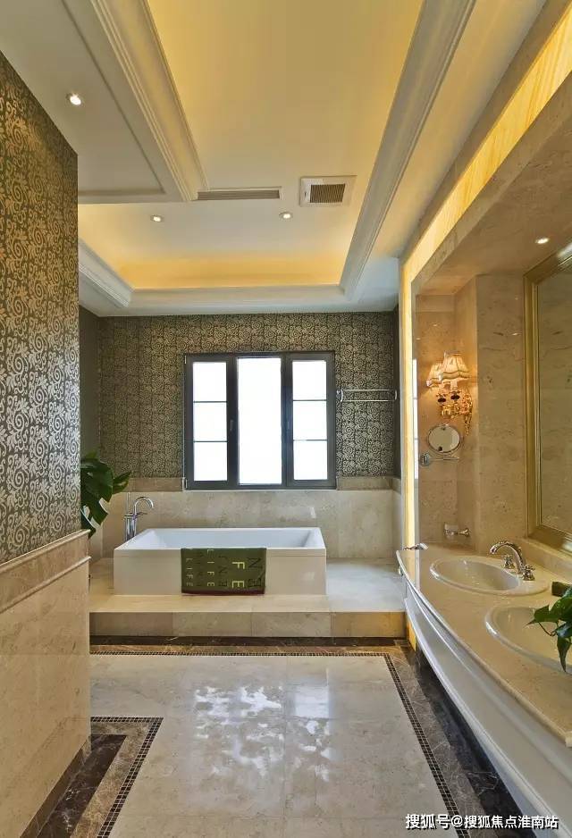 穿过衣帽间是一个25平极尽奢华的主卫,可做成双台盆,淋浴盆浴分离。