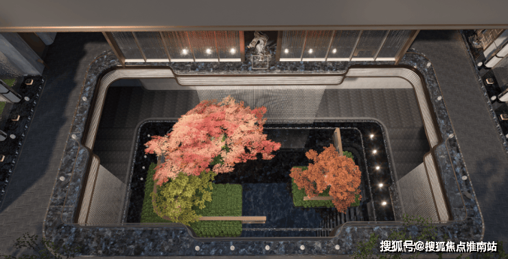 项目利用 下沉式景观庭院,结合艺术花园、摩登水景等,打造了一座高端的下沉式会所,规划设有 泳池、健身房、行政酒廊等场景。