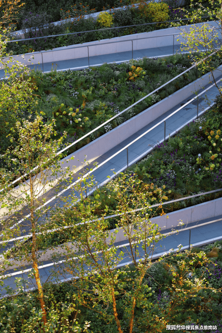 从一层大堂到约9.45m标高的高线公园、屋顶花园等一系列空间融合,创造了多维立体的社交生活场景。