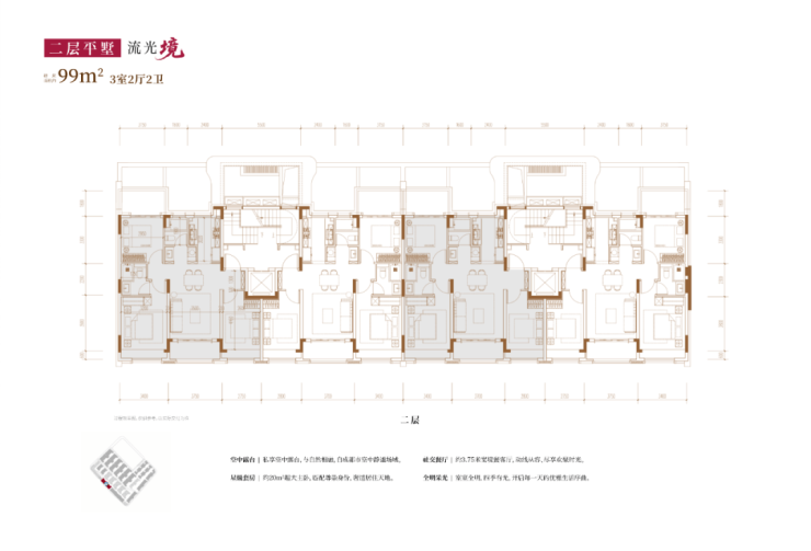 再配合超大面宽、全明设计和普遍的阳台飘窗赠送,实现了“层层有附赠,户户有天地”的院墅感。