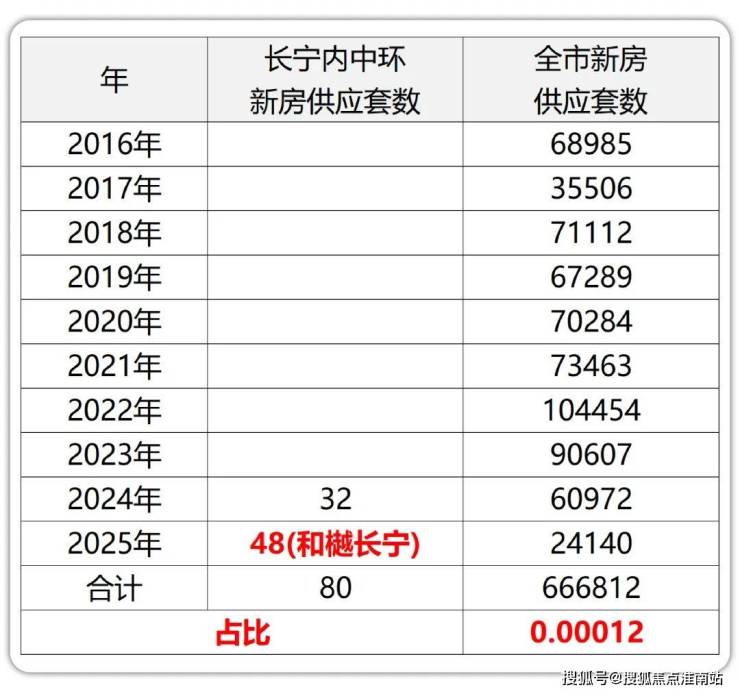 过往10年全上海合计入市新房约67万套,其中属于长宁内中环的只有80套(今年供应的48套正来自和樾长宁),占比仅约万分之一!