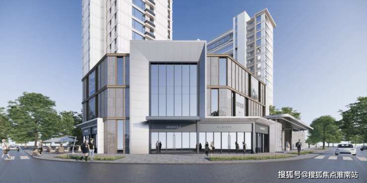 建筑风格遵循少即是多的设计理念,现代而又简约:立面利用大面积玻璃窗+仿石多彩漆,局部层间金属线条,并在首层基座采用人造石材和铝板等装饰材料,提升了建筑整体感和精致度。顶层外挑飘板使得建筑立面体块清晰,层次丰富。